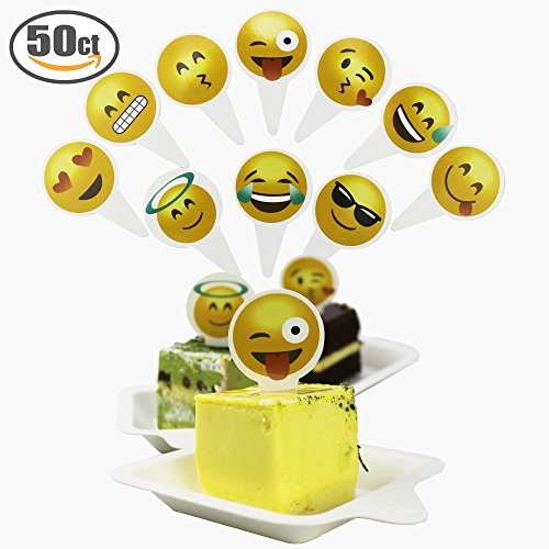 Emoji Cupcake Topper,MiMiLive 50pcs Cake Picks DIY Party Favors Kit Cute cake Topper For Cake Decoration