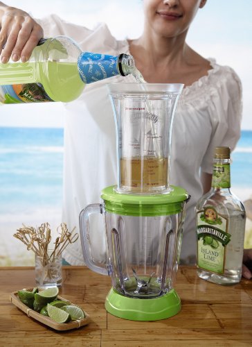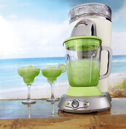 Bahamas Frozen Concoction Maker for creating fun, tropics-inspired party drinks;Ice-shaving blade in top-mounted ice reservoir; 36-ounce blending jar;No-Brainer mixing tool with measurements for making pinna coladas, daiquiris and margaritas;Automatic Shave N Blend cycle; manual Blend Only/Shave Only cycles; dishwasher-safe parts;Measures approximately 14 by 9 by 18 Inch; 1-year limited warranty