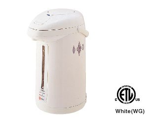 APTG22G Features: -Water heater. -Locking insulated top and body boils faster, keeps hot longer and reduces energy costs. -Special re-boil function brings water quickly to boil. -Dechlorinating feature eliminates unpleasant taste. -Detachable lid for easy cleaning. -Capacity: 2.3 liter. Color: -White. Material: -Plastic. Includes Lid: -Yes. Capacity: -2.3 Quarts. Dimensions: -Detachable 66'' power cord with polarized plug. Overall Height - Top to Bottom: -9.63". Overall Depth - Front to Back: -10". Overall Product Weight: -6 lbs.