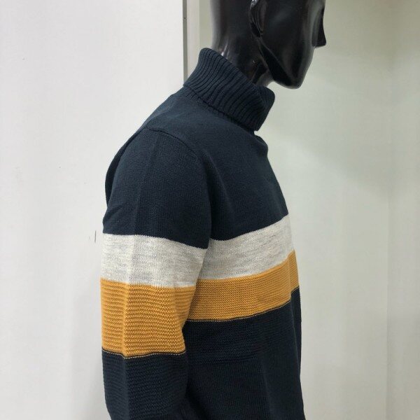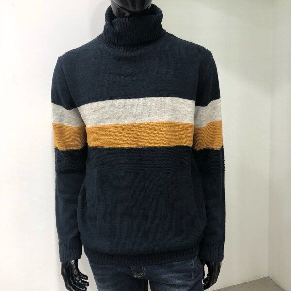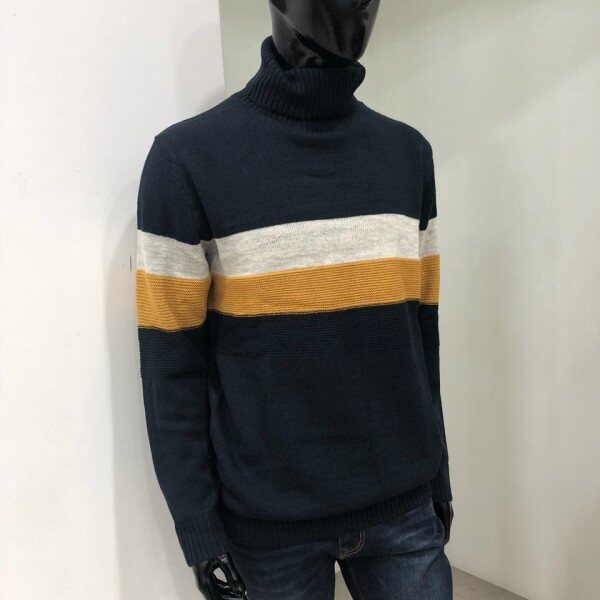 2018년 겨울 신상 남성 변형조직 블럭 터틀넥 스웨터 입니다. 변형조직과 양두조직의 서로 다른 조직감의 심플한 절개 포인트를 주었으며, 터틀넥 디테일로 보온성을 더해준 스웨터로 늦겨울까지 착용이 가능한 스웨터 입니다.