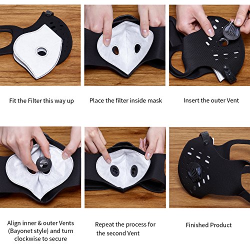 - SIZE - One size fits all, male and female, 3cm wide Velcro compared to other suppliers who only offer 2cm, our mask gives you maximum adjustability and therefore gives a secure fit to most head sizes. Replacement filters and vents available.
