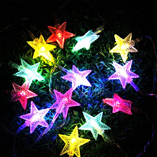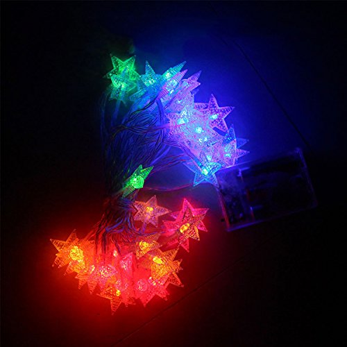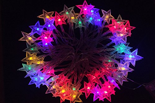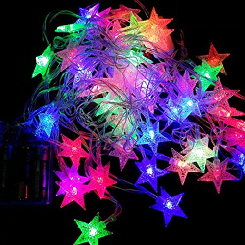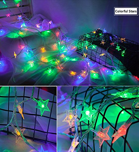 Battery Powered 23ft 40 LED Star String Lights,Ornament Star String Lights for Christmas, Party, Wedding, New Year, Indoor & Garden Decor (Colorful)