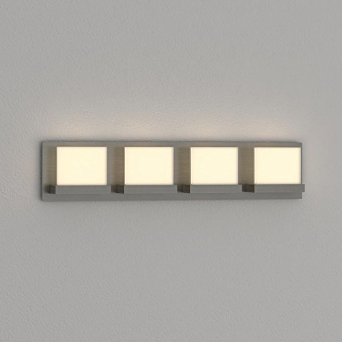 Contemporary lines, ultra-sleek look and high quality elegant finishes. The Alberson collection features frosted acrylic diffusers, vertically seated on a brushed nickel frame. This LED vanity adds a clean, refined look to your space. Available in 3 light and 4 light options. Specifications Dimensions Product Depth (in.): 3 in Product Height (in.): 5.25 in Product Width (in.): 24 Details Connection Type: Hardwired Fixture Color/Finish: Brushed Nickel Fixture Color/Finish Family: Nickel Hardware Included: Yes Light Bulb Base Code: Other Light Bulb Type Included: LED Light Direction: Ambient Maximum Bulb Wattage: 5 W Maximum Wattage (watts): 20 Number of Bulbs Required: 4 Product Weight (lb.): 7lb Recommended Light Bulb Shape Code: GY8.6 Shade Color Family: White Certifications and Listings ETL ListedFeature