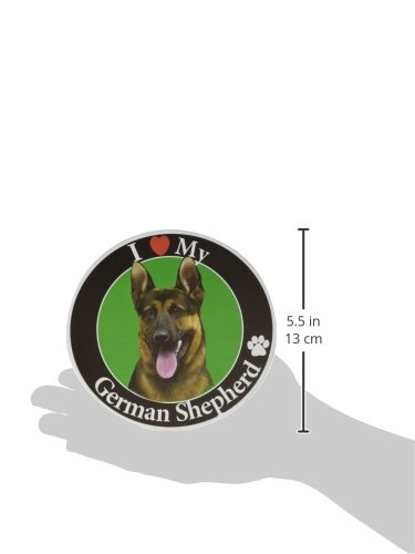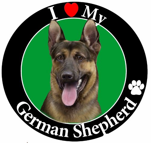 "I Love My German Shepherd" Car Magnet With Realistic Looking German Shepherd Photograph In The Center Covered In UV Gloss For Weather and Fading Protection Circle Shaped Magnet Measures 5.25 Inches Diameter