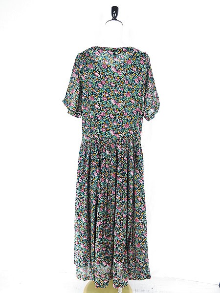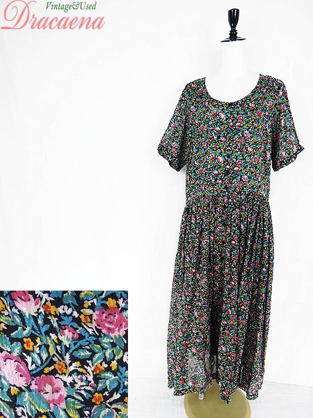 Ladies ブランド- カラー黒ベース メール便不可 コンディション★★★ 素材コットン 表記サイズS スタッフコメント裏地あり。 実寸サイズ 着丈 126 cm 身幅 54 cm 袖丈 31 cm 襟元から袖先までの計測 ウエスト 36 インチ( 92 cm) ※ウエスト・ヒップ以外は平置き採寸