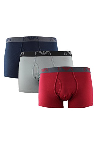 Emporio Armani Men's 3-Pack Cotton Trunk , Ruby/Ice/Marine, Medium (Pack of 3)