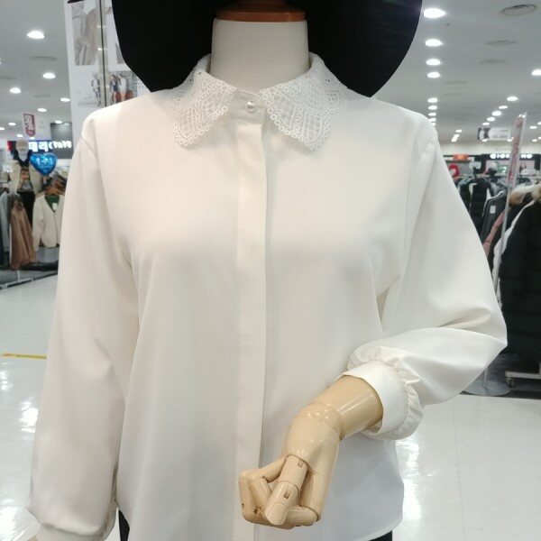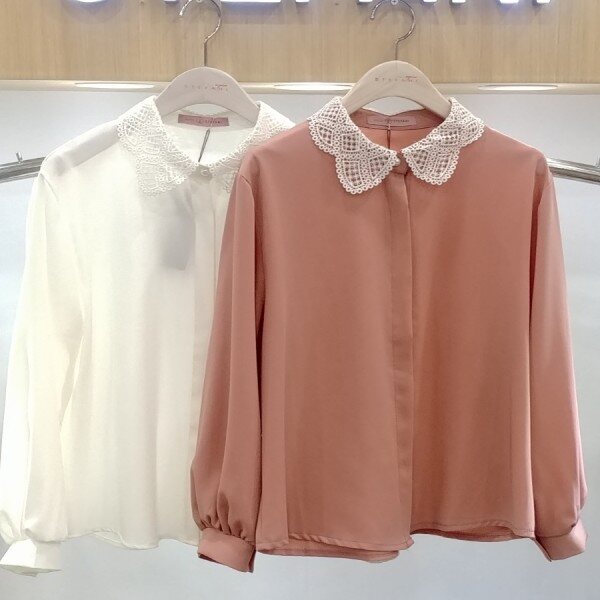 페미닌한 무드가 느껴지는러블리한 레이스카라 블라우스에요레이스배색 디테일과 퍼프소매로로맨틱한 분위기를 선사해드리며스커트,팬츠 어디에나 매치하기 좋은2019 봄 핫 아이템!!!단추로 오픈 클로징이 편한오피스룩 데이트룩으로 강추드려요~~