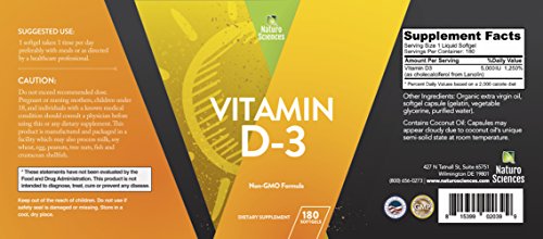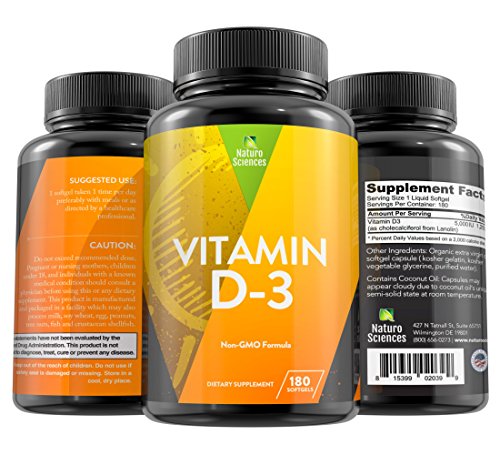 -. Title : Vitamin D3 5000 IU Dietary Supplement By Naturo Sciences - Non GMO Formula With Extra Virgin Coconut Oil - Supports The Immune System, Aids Dental Health & Helps Maintain Strong Bones - 180 Sgels