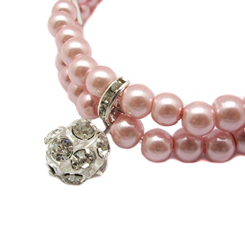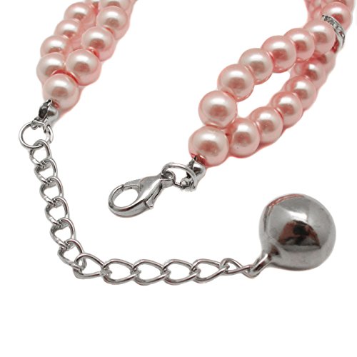 Alfie Pet by Petoga Couture - Lizbeth Double Layer Pearl Necklace for Dogs and Cats with Fabric Storage Bag, Color: Pink