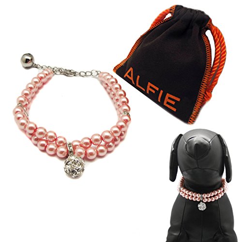 Adorable pet necklace, double rows of beautiful and noble pearls. Product comes with Alfie Signature fabric storage bag for convenience and protection for years to come.