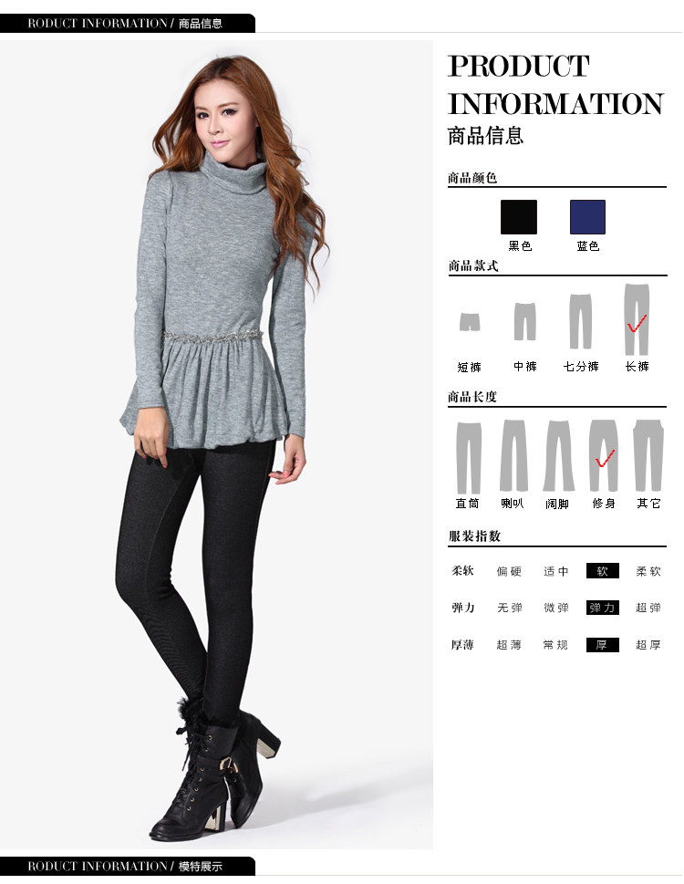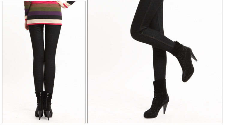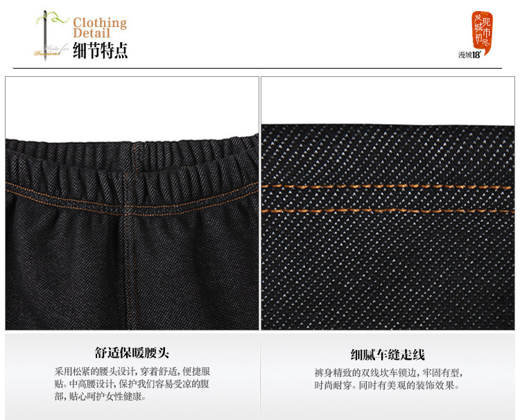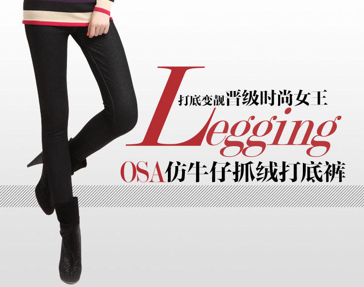 简单的款式,没有太多复杂的装饰,为的就是百搭和简洁。保暖的抓绒设计是这款时尚百搭针织牛仔抓绒打底裤的魅力之处。在寒冷的秋冬季可直接穿着,保暖又时尚百搭。贴袋设计,提升臀部曲线,虽简洁却不失层次感,采用这种牛仔感觉的面料其实就是为了让它能外穿,这样一来不用担心太短的上衣遮不住丝袜的臀围线,既能显瘦内搭又能时尚外穿的打底裤是不是更能受莎迷喜爱呢?答案是相当肯定的。