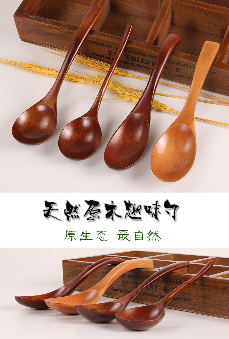 风沙渡儿童汤勺瓢羹小木勺子小长柄吃饭勺子短柄木头勺子成人家用