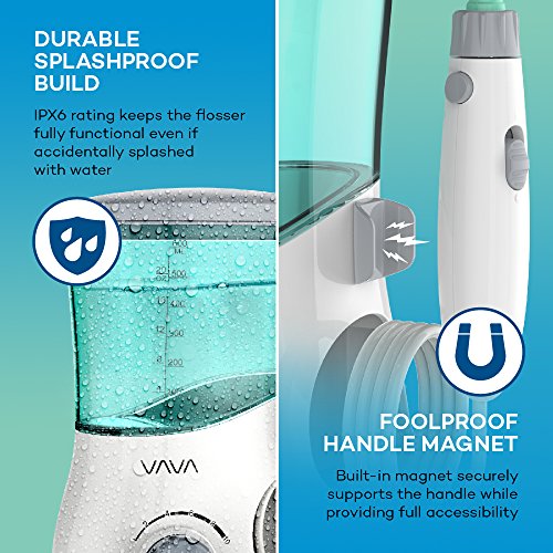 Durable Spashproof Build: IPX6 rating keeps the flosser fully functional even if splashed with water; built-in magnet securely supports the handle while providing full accessibility