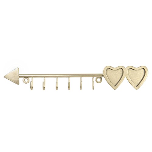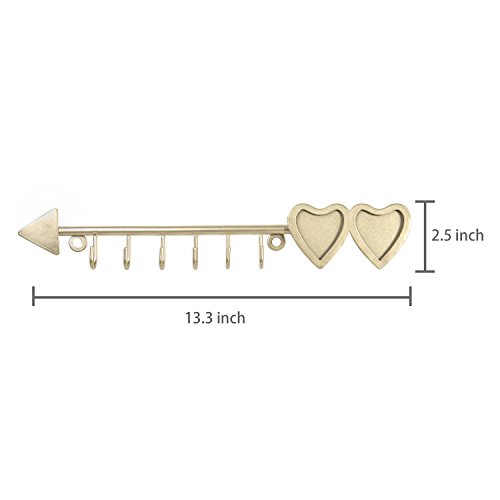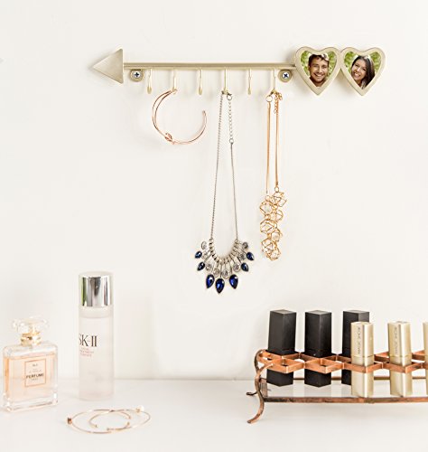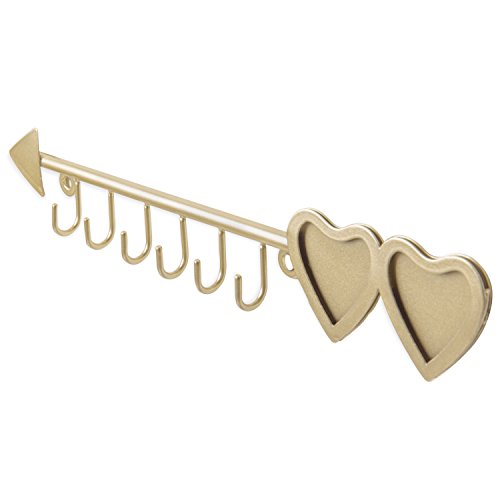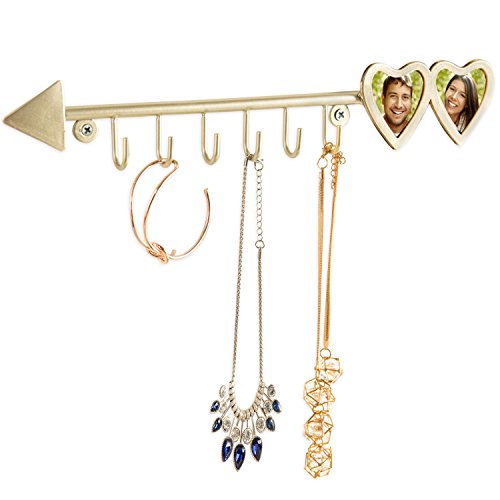 MyGift Brass-Tone Arrow Design Hanging Necklace Rack with 2 Heart-Shaped Photo Frames