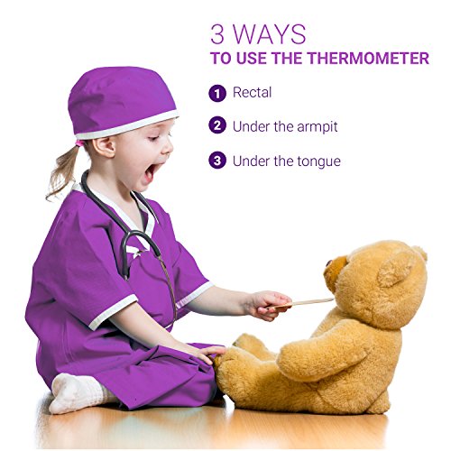 👶 ACCURATE: Accurate to within 0.2F. Easily diagnose fever or illness with the press of a button. Extra battery included.