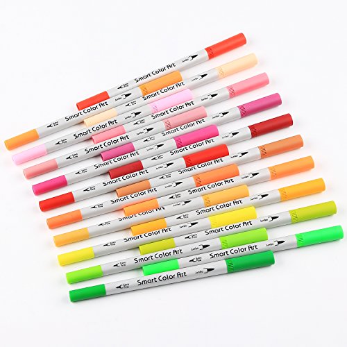 Smart Color Art Dual Tip Brush Pens with Fineliner Tip 0.4 Art Markers (48 Unique Colors)