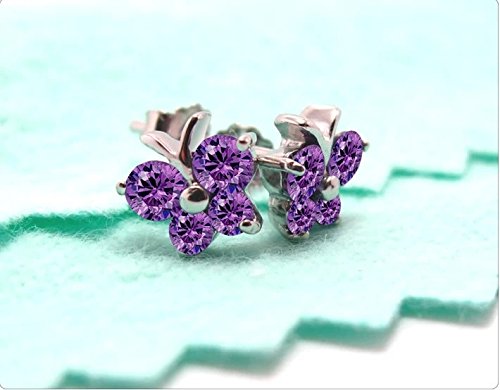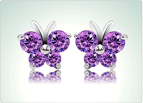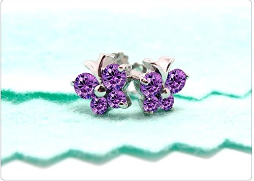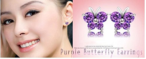 - Title : Sterling Silver Cute Purple Diamond Color Crystal Butterfly Stud Earrings