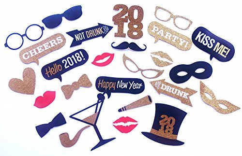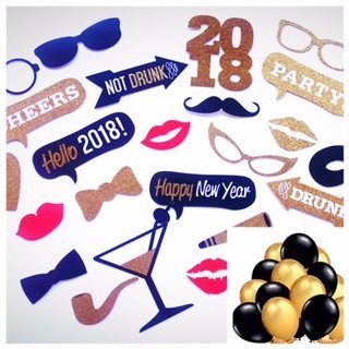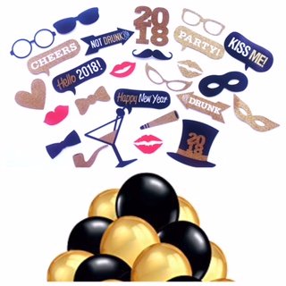 New Years Eve Photo Booth Props (26 count) with Black and Gold Balloons by Love Events