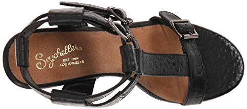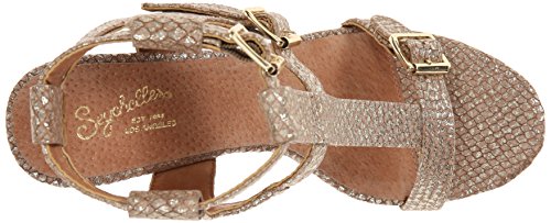 Studio : Seychelles Publisher : Seychelles Binding : Apparel Product Description A modern take on the season's gladiator styles, this pebbled-leather T-strap sandal stands out from the pack with its bold ankle cuff and a stacked block heel. A trio of buckles add edgy polish while perfecting the fit. 0