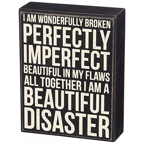 Primitives by Kathy Box Sign - Beautiful Disaster - Small 5" x 6.5" Decorative Wood Quote Home Decor Plaque