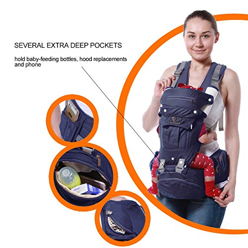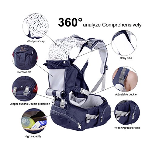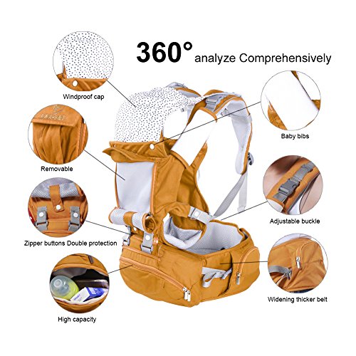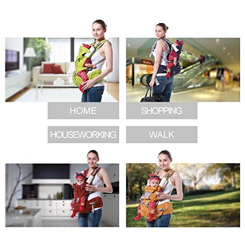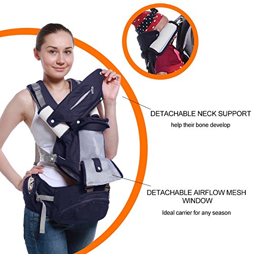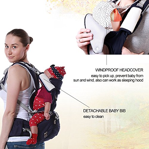 -. Feature : PERFECT for all season. 100% organic cotton + Breathable mesh for the best feeling on baby skin. Vented window keeps your baby cool in summer / GREAT for nursing: breastfeeding is convenient and private in the carrier / MORE carrying positions: front facing in/out, back carry, side/hip carry, front toddler. Detachable "Hip Seat" for baby to seat on instead of dangling. Longer lifespan(3-36 months) / EXTREMELY ergonomic & comfortable. Thoughtful design evenly distribute baby's weight and relieve shoulder and lumbar pressure. Prevent leg dangle: Provides an ergonomic M-position seat / VERSTILE baby carrier - Includes the Sunshine Hood, 2 Baby Bibs, Lumbar Support, Neck Support and Zippered Pocket