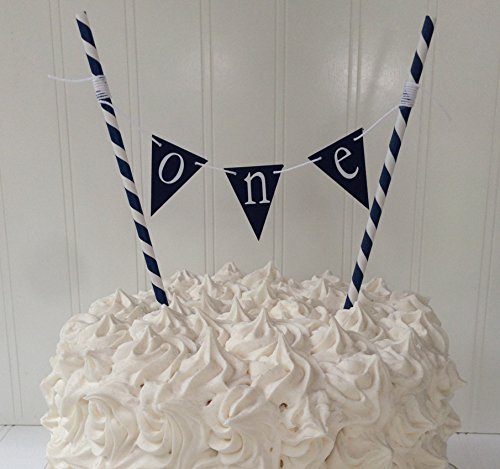Birthday Cake Topper, One Birthday Banner, Hello Sailor, Navy Blue Banner by Piece of Cake Parties
