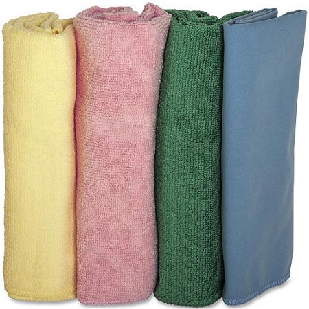 Studio : Genuine Joe Publisher : Genuine Joe Product Description Genuine Joe Microfiber Cleaning Cloths provide excellent lint-free cleaning for any surface. They're ideal for countertops, porcelain, chrome, glass and wood. Ultra-fine, densely bundled microscopic fibers form a cleaning surface 40 times greater than regular cotton fiber to remove substantially more dust, dirt and bacteria than conventional cleaning products. These towels are color-coded. The blue suede towel is specially designed and knitted for cleaning glass and mirrors. Other towels in green, pink and yellow are designed for general purpose cleaning. Towels trap dirt and dust and can be laundered extensively (not with fabric softener). No chemicals are required for cleaning with microfiber towels. 0