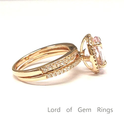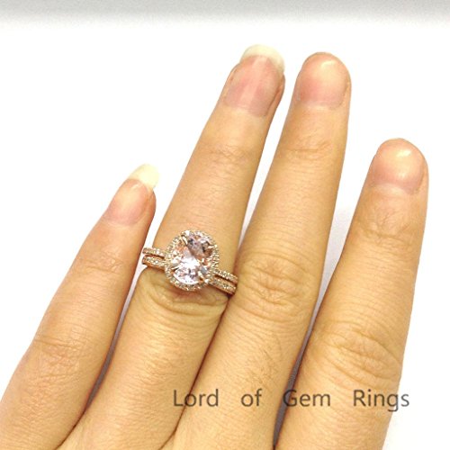 -. Title : Oval Morganite Engagement Ring Sets Pave Diamond Wedding 14K Rose Gold 7x9mm