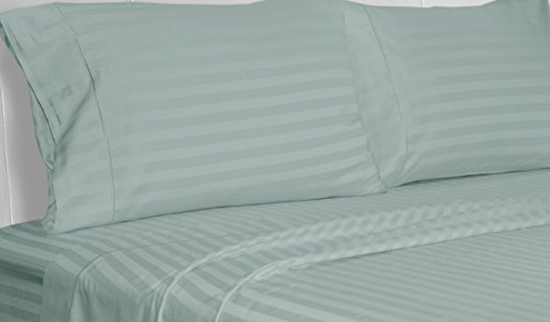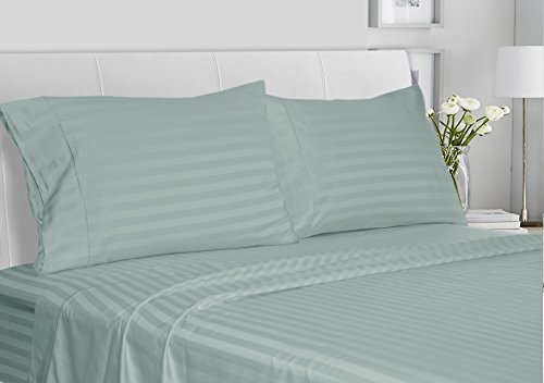 Tailored fit and elegant look. This 4 piece sheet set includes: One flat sheet, one fitted sheet and two standard pillowcases each. Fully elasticized fitted sheet which provide 15-inch-deep pockets to accommodate both deep and pillow-top mattresses. The damask striped sheets gives a chic look to your bedroom