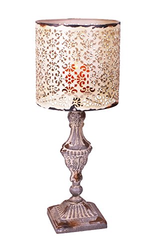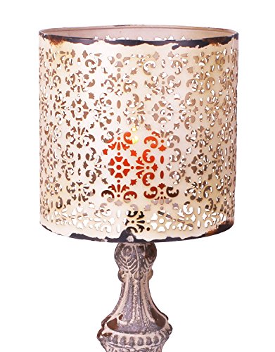 YK Decor Metal Vintage Table Candle Holder Candle Lamp, Beige White