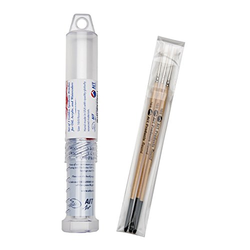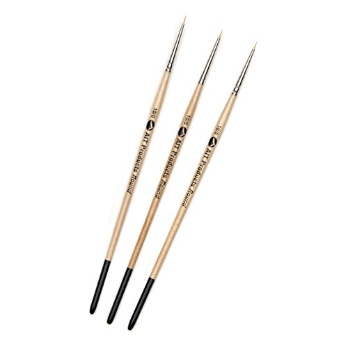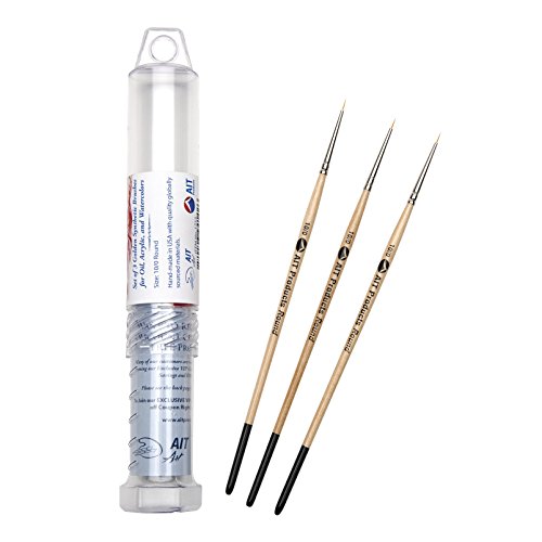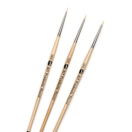 AIT Art Round Detail Paint Brushes, Size 10/0, Pack of 3, Handmade in USA for Trusted Performance Painting Small Details with Oil, Acrylic, and Watercolors