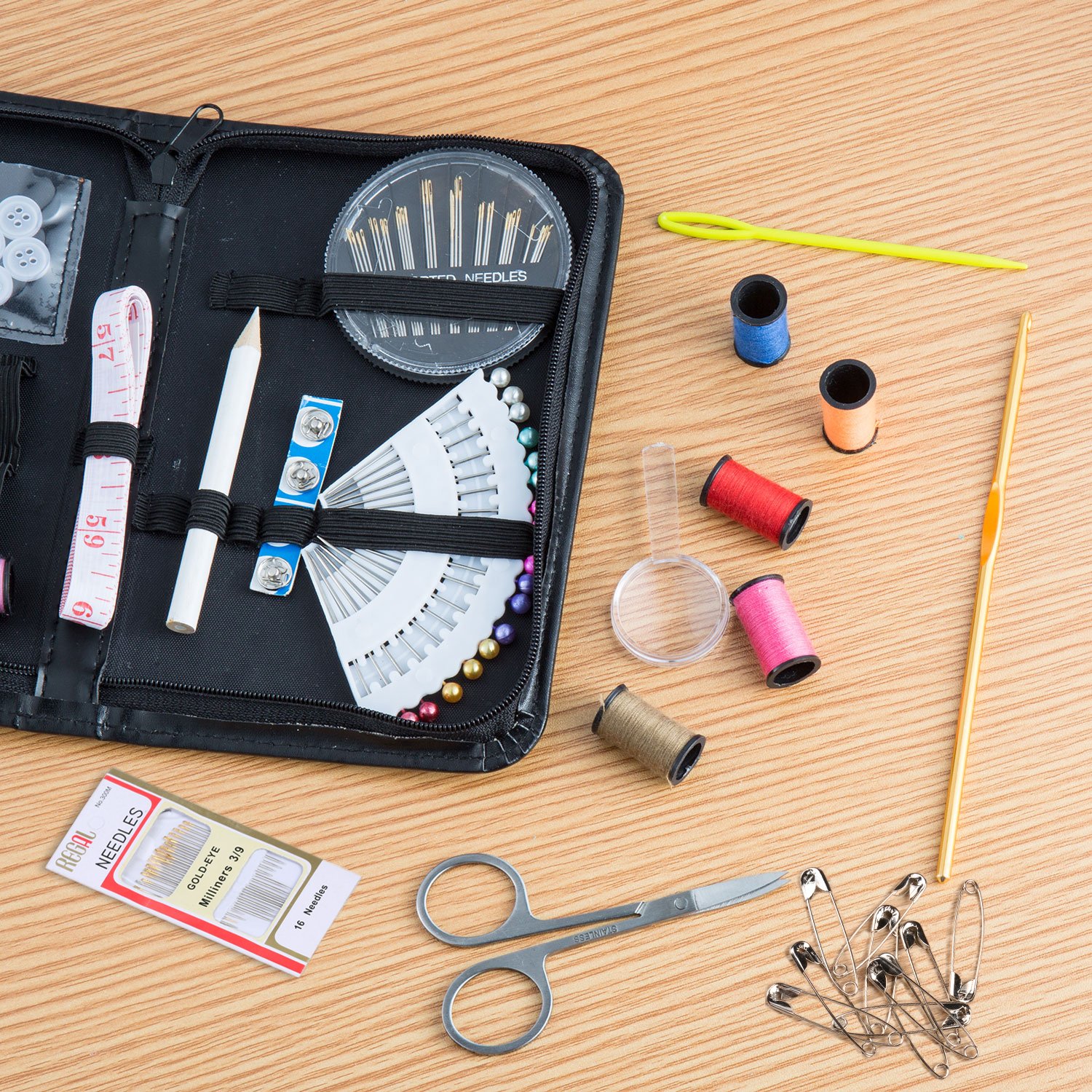 4 pieces Safety pin & 4 pieces 4 buttons Steel button, 18 needle needle, threading thread, measuring tape,