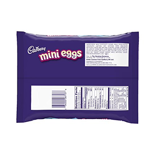 -. Feature : Milk chocolate with a crisp sugar shell / Cadbury Mini Eggs are a "can't miss" hit with family and friends / Pastel colored candy eggs / Easily fit inside plastic eggs for an Easter egg hunt / Includes 3 packs, Cadbury Easter Candy Coated Mini Eggs (18-Ounce bag)