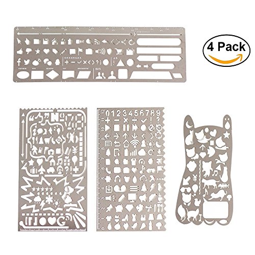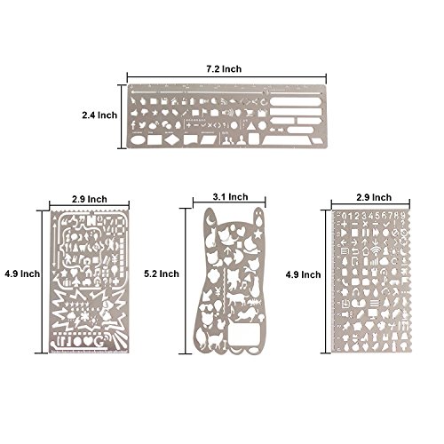 Bullet Journal Stencil Set, GP Life Stainless Steel Drawing Templates Scale ruler, Drawing Journal Planner For Journaling, Bullet Journal, Scrapbooking Card and Craft Projects