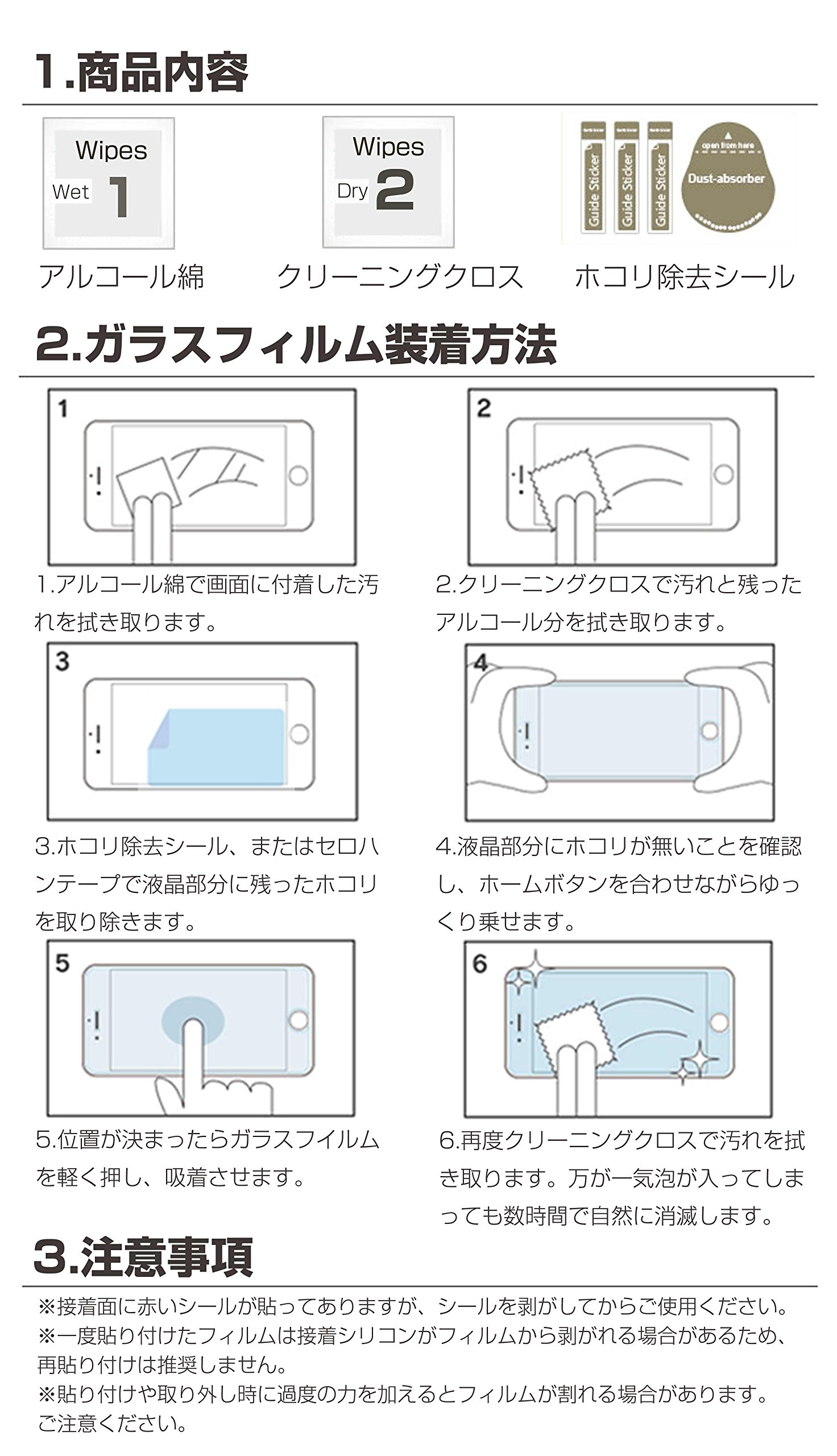 <4> Please drop fingerprints etc. with cloth remaining bubbles.
