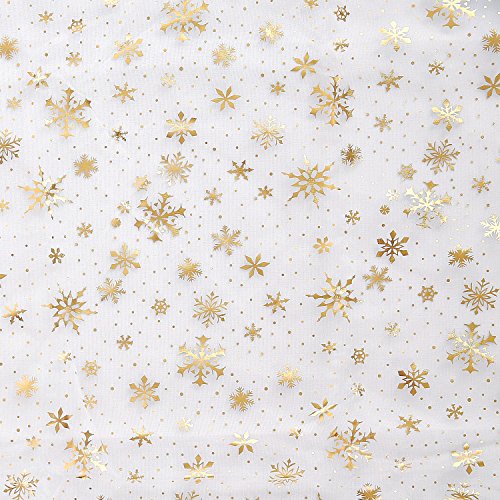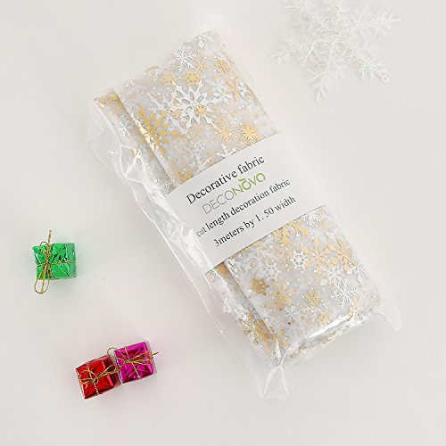 Deconovo Organza Glittering Shining Christmas Tree Skirt Room Decoration Fabric Party Decorations Christmas Various Snowflake Gold Foil 59 Inch By 118 Inch