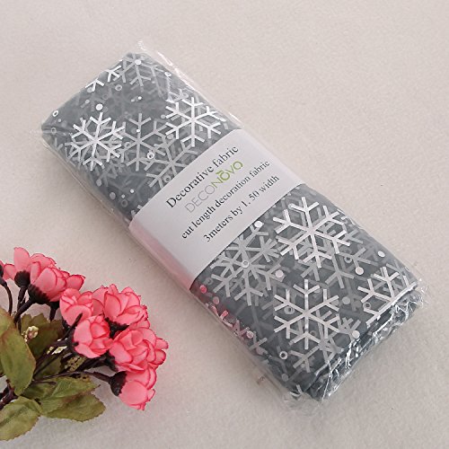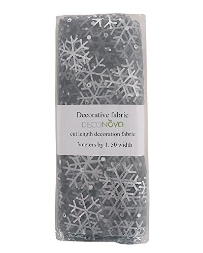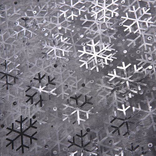 Deconovo Decorative Organza Christmas Decorative Fabric Glittering Shining Party Decorations for Table Grey Snowflake Pattern 59W x 118L Inch