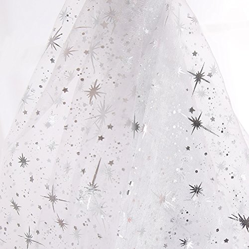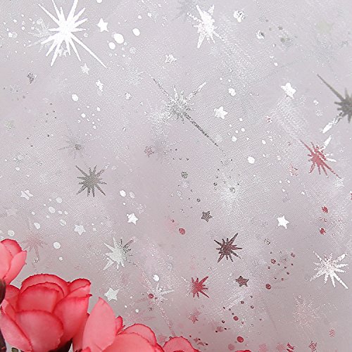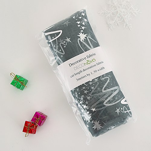 Deconovo Organza Glittering Shining Christmas Tree Skirt Room Decoration Fabric Party Decorations Star Christmas Trees Drawing Silver Foil 59 Inch By 118 Inch