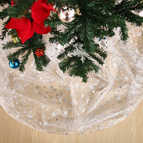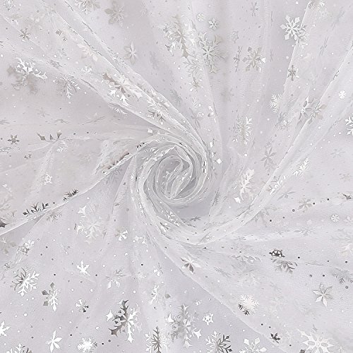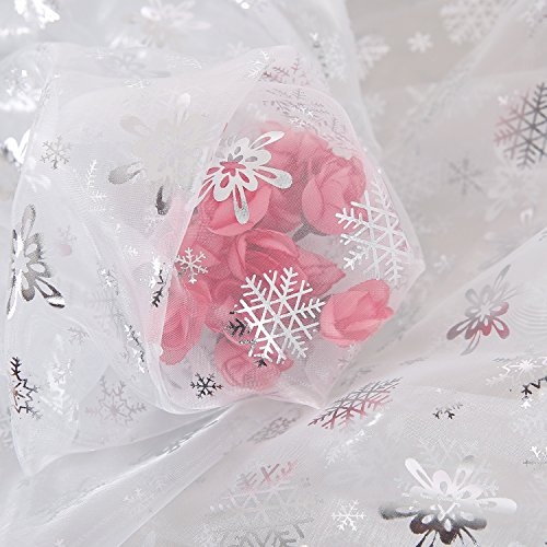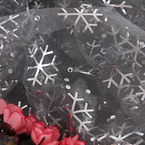 Deconovo Organza Glittering Shining Christmas Tree Skirt Room Decoration Fabric Party Decorations Christmas Various Snowflake Silver Foil 59 Inch By 118 Inch