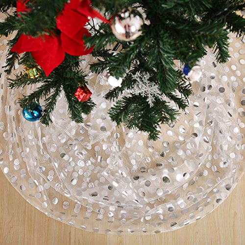 Deconovo Organza Glittering Shining Christmas Tree Skirt Room Decoration Fabric Party Decorations Christmas Dot Silver Foil 59 Inch By 118 Inch