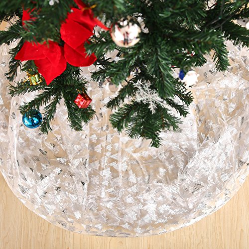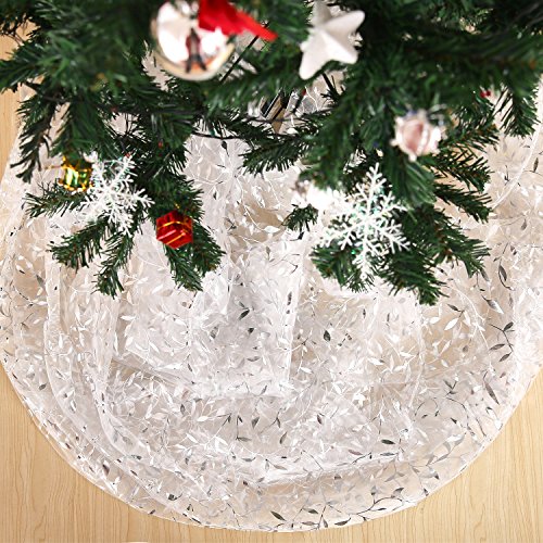Deconovo Organza Glittering Shining Christmas Tree Skirt Room Party Decorations Cute Christmas Trees Silver Foil 59 Inch By 118 Inch
