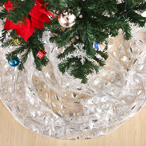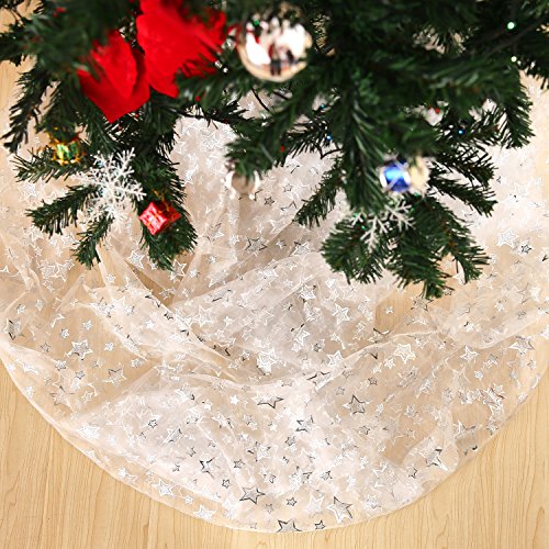 Deconovo Organza Glittering Shining Christmas Tree Skirt Room Decoration Fabric Party Decorations Star Pattern Silver Foil Silver Spill Inside 59 Inch By 118 Inch