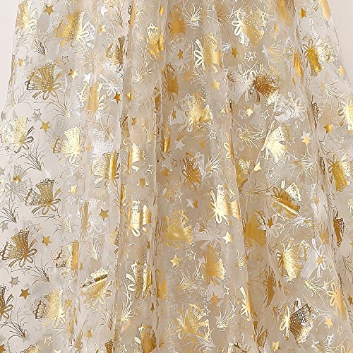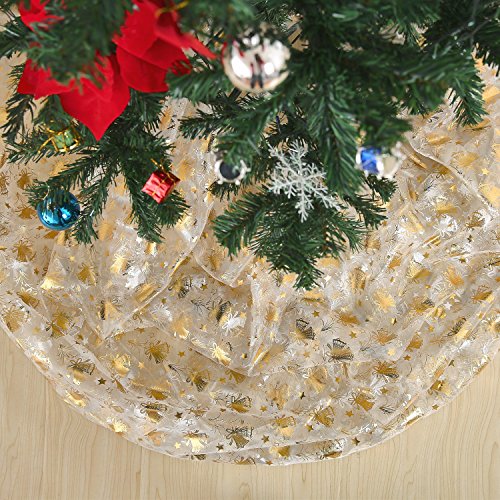Deconovo Organza Glittering Shining Christmas Tree Skirt Room Decoration Fabric Party Decorations Christmas Bell Gold Foil 59 Inch By 118 Inch