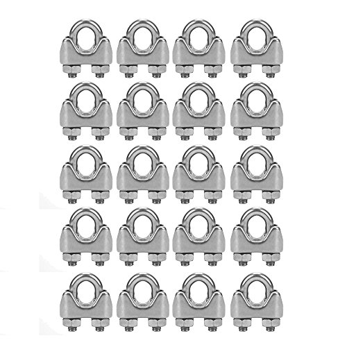 Accessbuy 20pcs M4 5/32 Inch Stainless Steel Wire Rope Cable Clamp Clips 4mm Wire Rope Cable Faster U Bolt Saddle