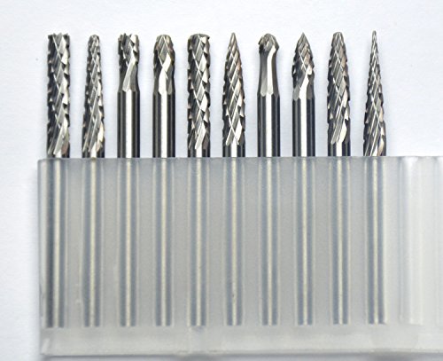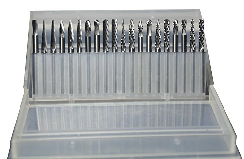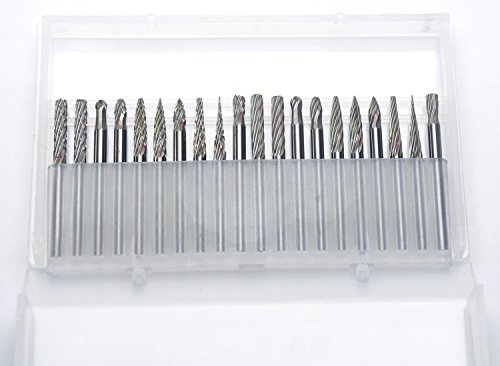 KOTVTM 20Pcs Tungsten Steel Solid Carbide Rotary Burr Tool 1/8" Shank Single/Double Cut Head Fits Rotary Tool for Woodworking Drilling Carving Engraving