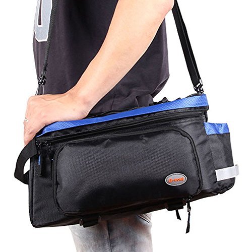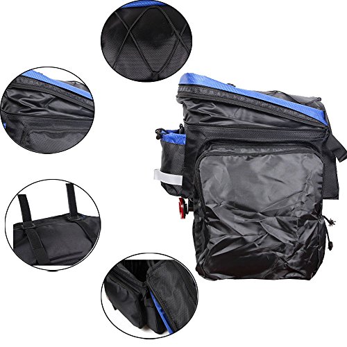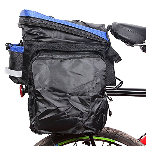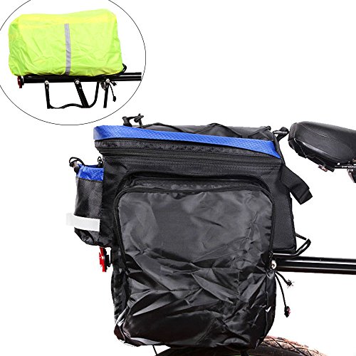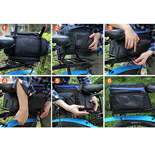 MULTIFUNCTION: Bag Size(L*W*H)-14.17*7.87*7.08inch.The rack bag is easily converted to single shoulder bag or a handbag with adjustable strap and Raincover is in the bottom pocket