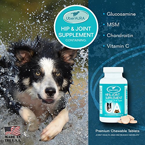 UberAura's natural, chewable hip and joint tablets are suitable for all breeds and all sizes, especially for working dog breeds, very active dogs and senior dogs showing signs of joint health problems, arthritis, joint pain, hip dysplasia and inflammation.