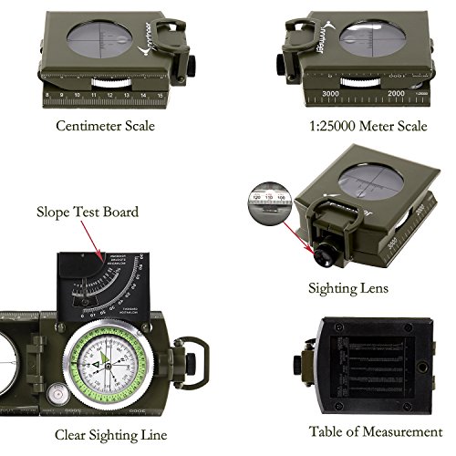 Studio : Sportneer Publisher : Sportneer Binding : Misc. Product Description Whether you are trekking through those rugged plains, or trying to find that lookout point with a gorgeous view, it's always nice to have a fellow adventure buddy who always knows where they are going. And here at Sportneer, we want to be that companion. The Sportneer's Military Grade Compass - your tough, burly compass-friend who will always point you back to the right direction. It navigates, orientates positions, measures slopes, angles and scales and locates direction - like the friend who always adopts the backseat driver role - just without the pompous nagging. We've also added a slope meter to our upgraded model, a great feature for rock climbers and engineers. Their extreme durability can conquer even the toughest of conditions! You'll always know where you're headed, rain, shine, day, or night.
