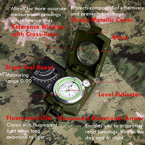 A Compass That's Built To Last They say you can't choose your family, but you can choose your friends. And your gadgets. So of course, you'd want only the best. And with military construction? You will be getting the best. If crafting this navigation compass with high quality, b engineering metal isn't enough, we've also equipped with a rugged metal casing, and made it waterproof and shakeproof - so you can always rely on us. We don't break easy! Specifications: Army Green Compass -Item Size: 3.3'x2.5'x1' -Item Weight: 0.39 lbs -Package Dimensions: 4.3'x3.2'x1.5' -Package Weight: 0.47lbs