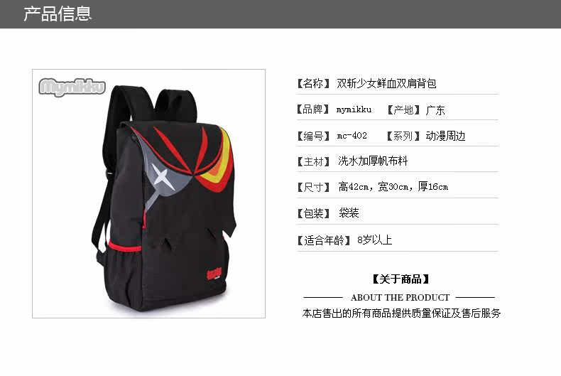 斩服少女书包 缠流子鲜血 帆布背包 学生动漫 加厚双肩包
